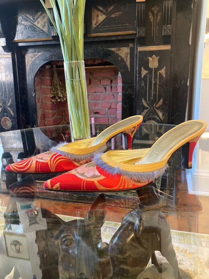 In lieu of a quiver, this shop carries big slouchy totes made of mulberry silk velvet. I’m partial to the grey blue. Come evening, an Emanuel Ungaro tasseled brocade reticule bag will hold your arrows and your lipstick.