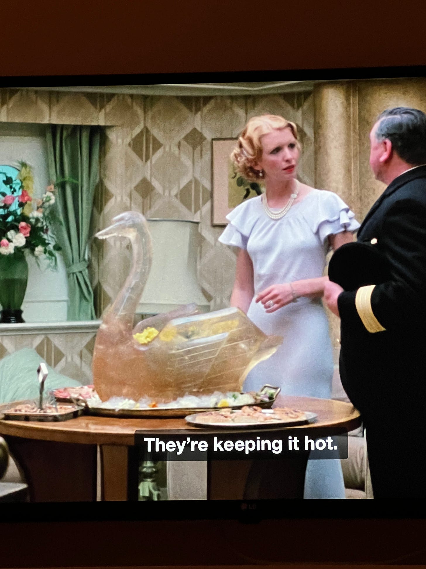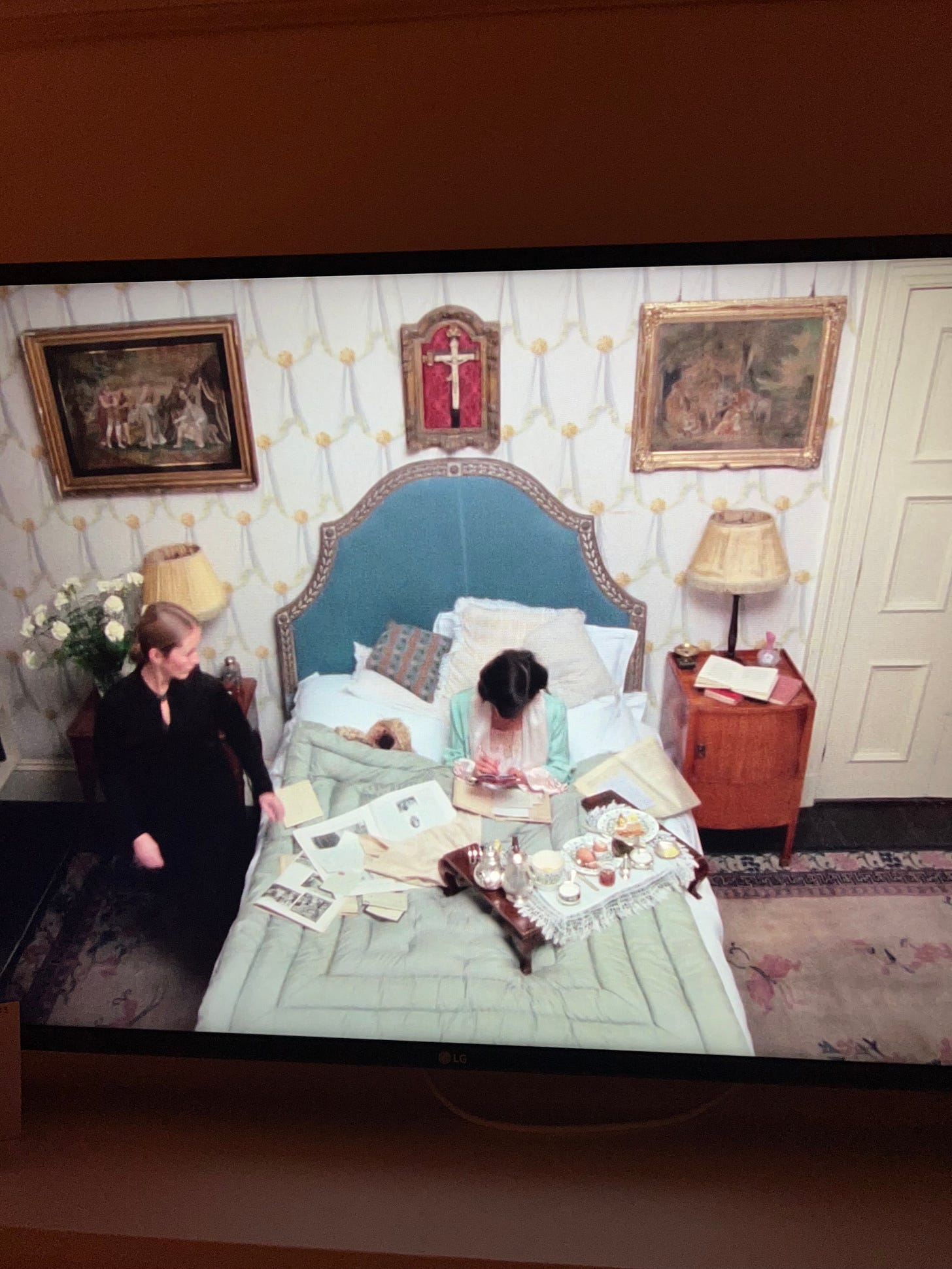 The interiors are delicious, all British Old Money regency greens and pinks, and though everyone in the film is supremely unhappy, it is such a cozy watch.
