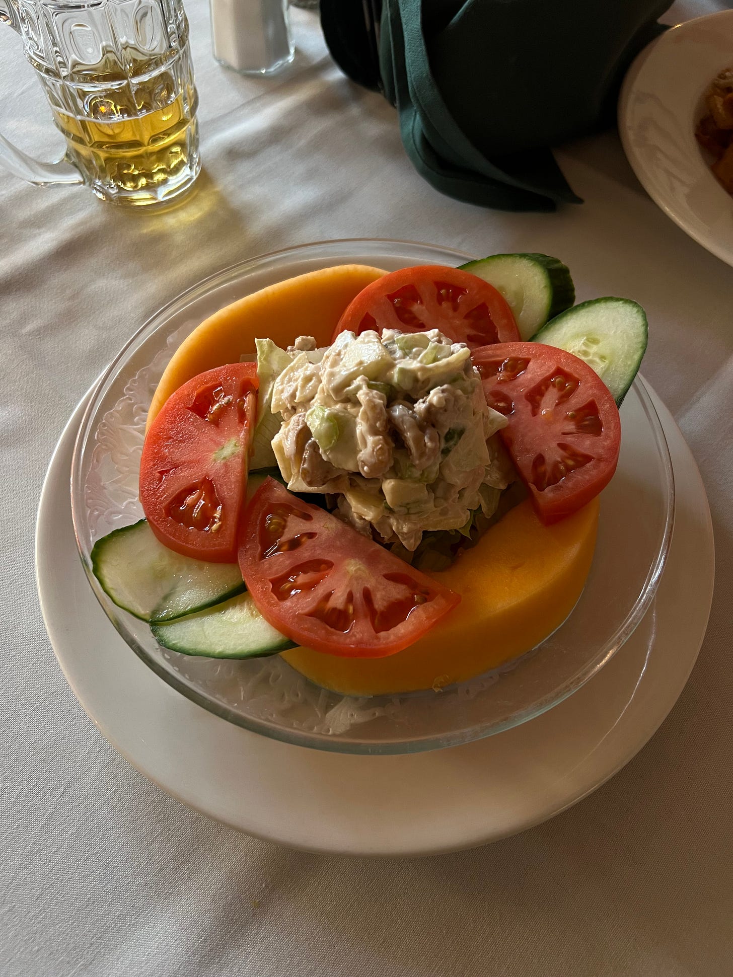 The pseudo-90s health spa fare at this completely charming Austrian restaurant where I dined with my best friend after visiting a pumpkin patch outside of the city in October. I’m so sorry but I am going to gatekeep this for no reason other than pure selfishness. I’m sure you can figure it out. I ordered consommé, chicken salad served in half a cantaloupe and beer. Sun streamed into the room and I smiled even as I felt the first sinus tickle of an autumn cold.