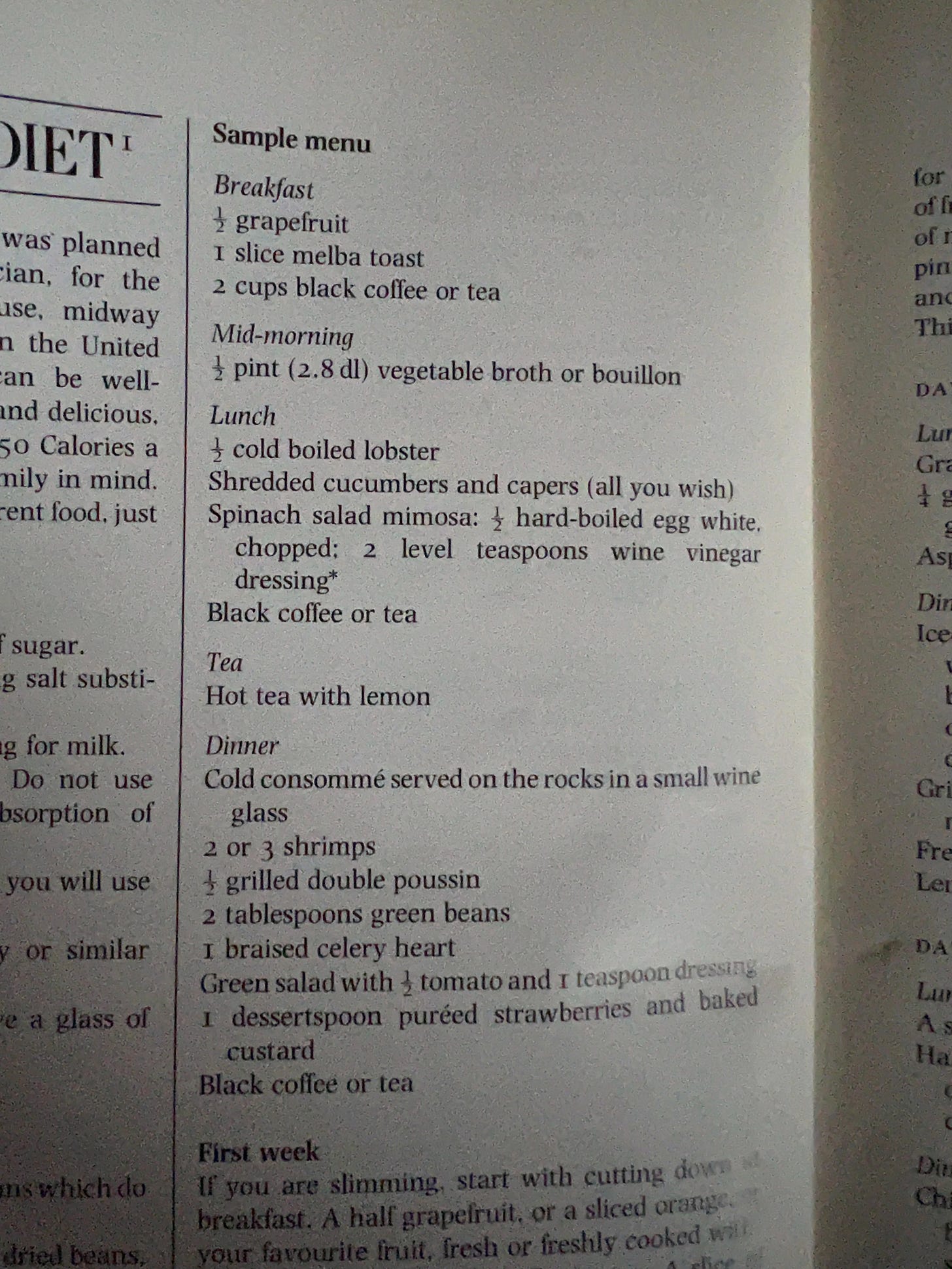 This menu from a Vogue book on diet from the 80s: