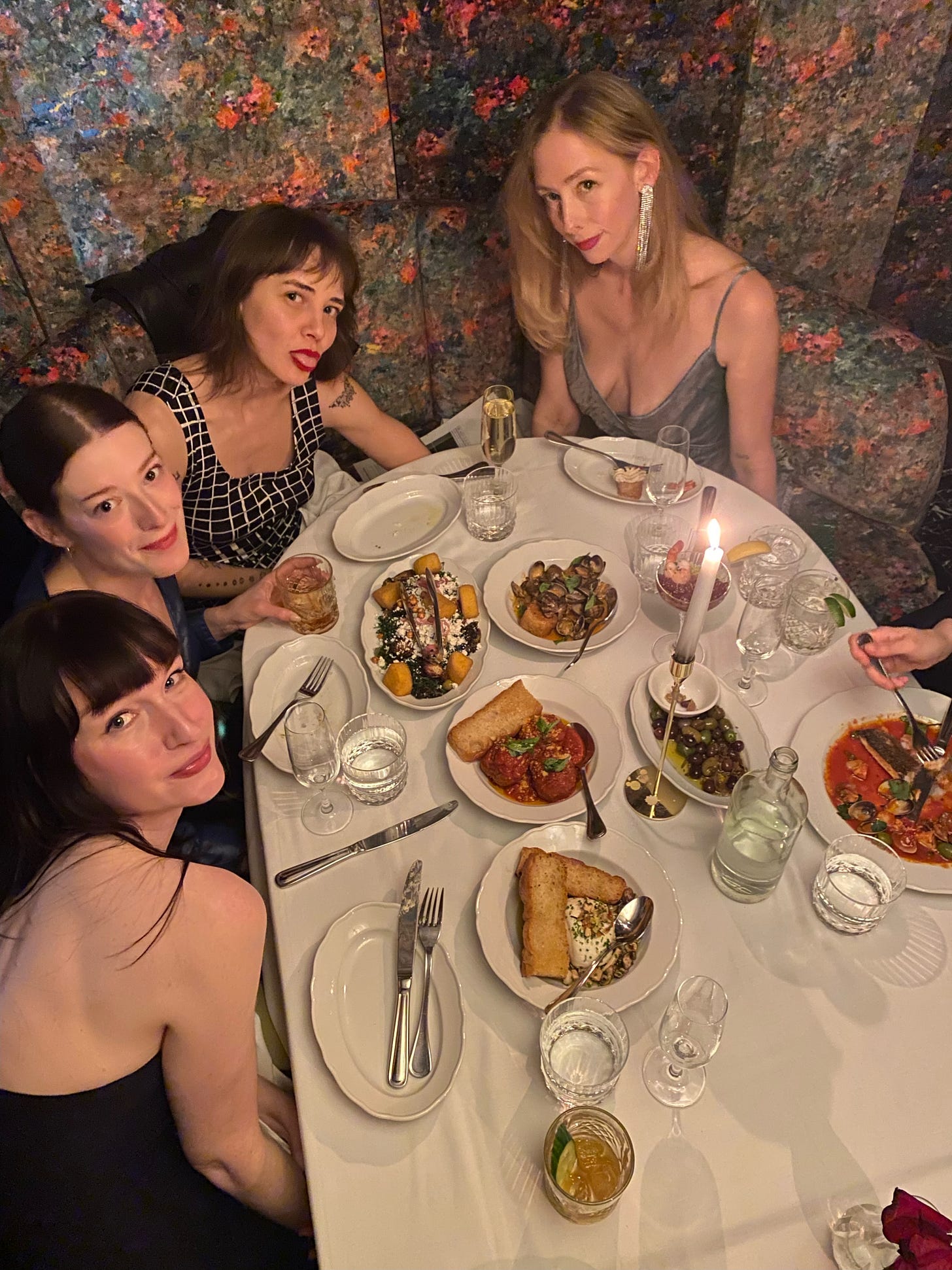 My birthday dinner at the downtown location of Piano Piano - not remarkable for its flavor, as most of my party were on mushrooms and didn’t taste a bite, and not for its ambiance, although they put us in a private vestibule enclosed with heavy floral velvet curtains that canopied elegantly overhead - but for the company and conversation. I remember some speculation about the size of the eggs in our wombs, which is a topic that should be discussed more often, frankly!