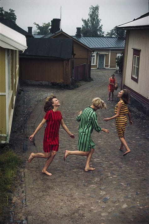 Learning to blow glass in a cottage in the forest? This 70s printed shirtdress, 90s striped marimekko maxi or salmon colored smock dress may please you.